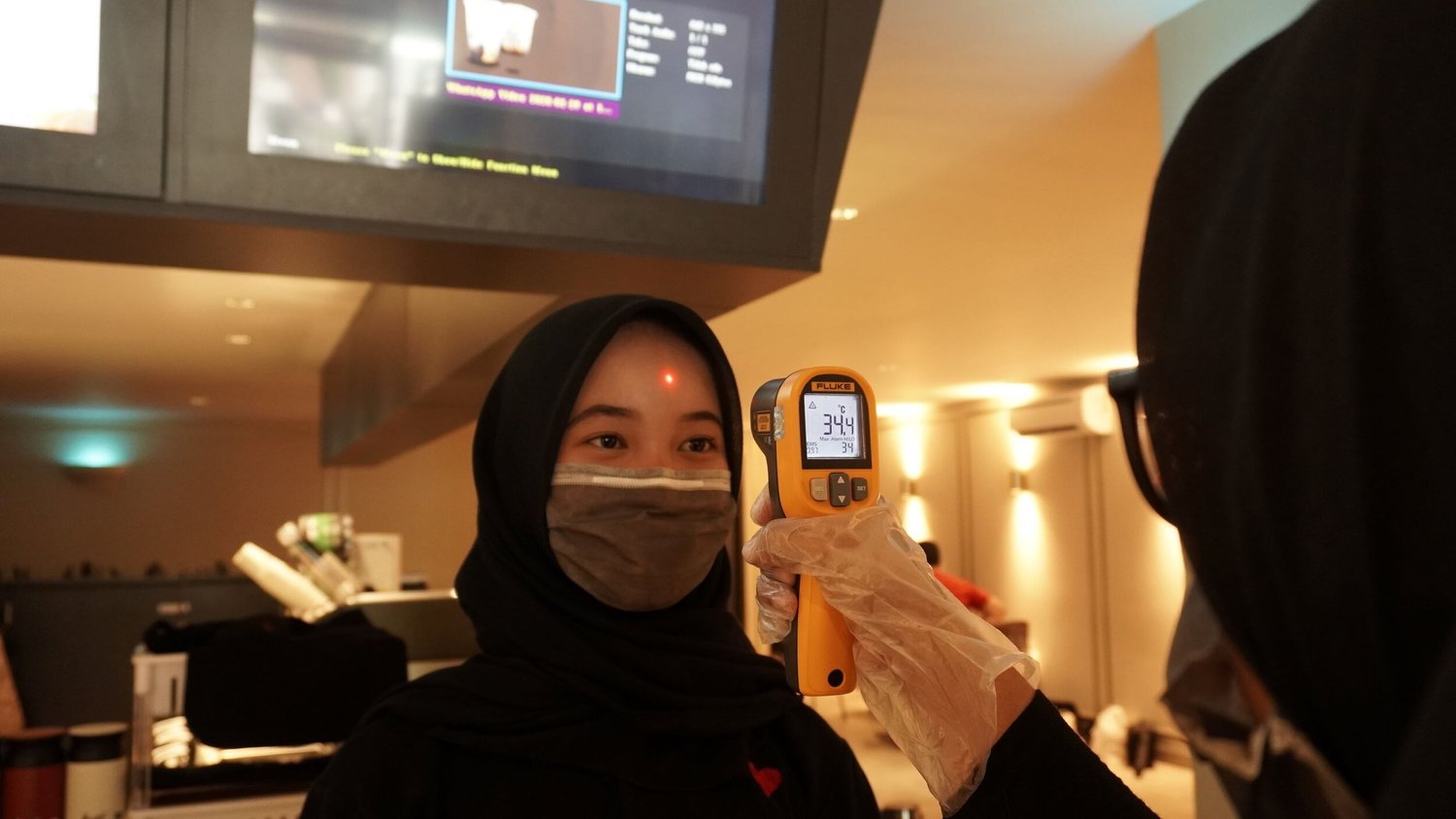 Menggunakan masker wajah dan sarung tangan non-medis di area kerja.