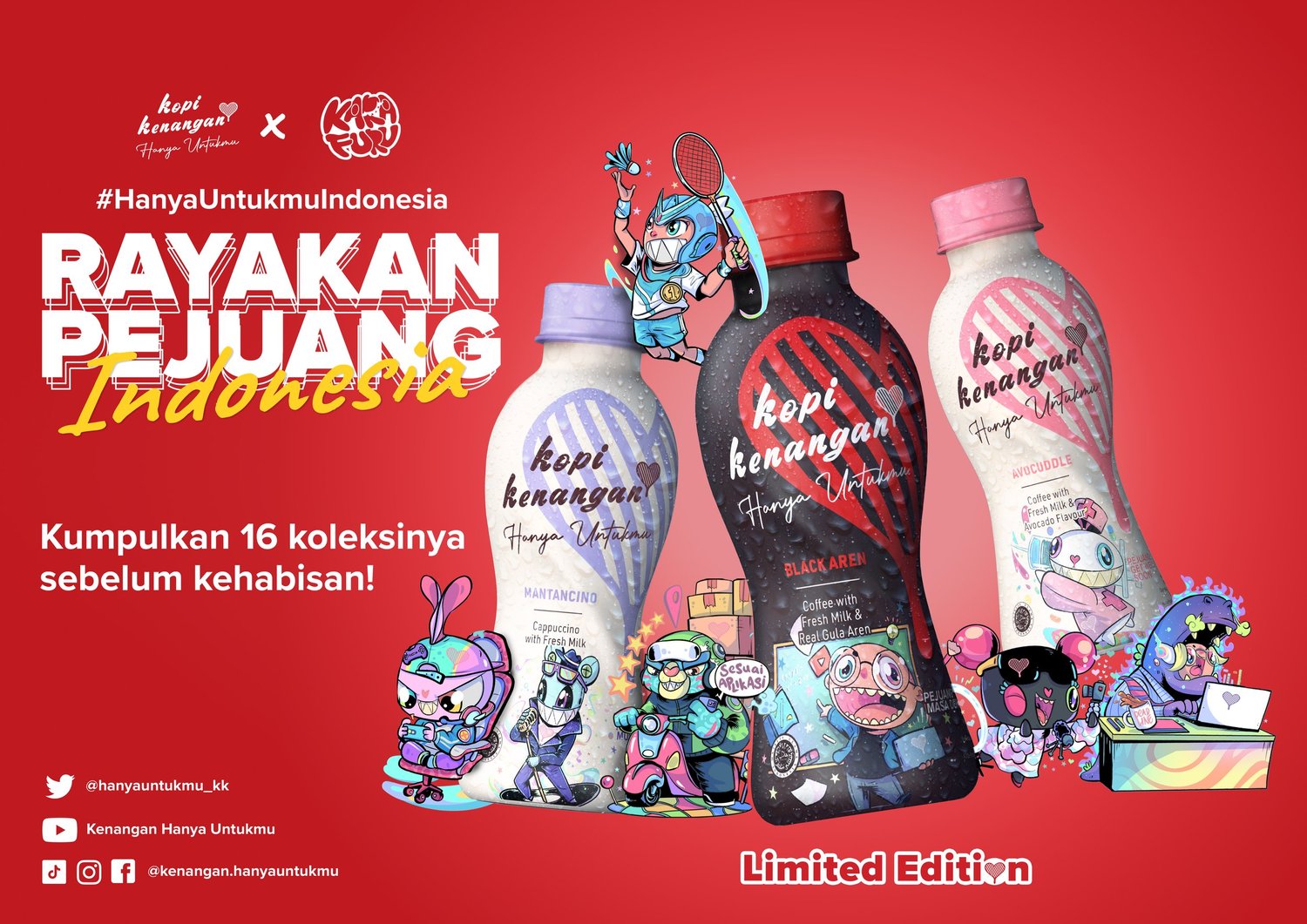 Kopi Kenangan Hanya Untukmu, kopi kemasan siap minum yang berada di bawah naungan Kenangan Brands, menggandeng NFT Artist terkemuka asal Indonesia, Karafuru, untuk menyambut Hari Kemerdekaan Indonesia melalui kolaborasi #HanyaUntukmuIndonesia. Bersama Karafuru, Kopi Kenangan Hanya Untukmu mengeluarkan delapan desain unik yang menggambarkan kehidupan para Pejuang Masa Kini. Delapan desain unik ini kemudian dimanifestasikan dalam kemasan Kopi Kenangan Hanya Untukmu edisi terbatas yang akan tersedia di Alfamart, Alfamidi, Indomaret dan supermarket seluruh Indonesia serta secara daring melalui Tokopedia secara serentak mulai dari tanggal 24 Juli 2022.